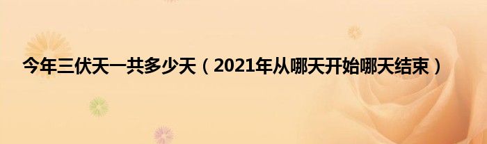 大家好,综合小编来为大家讲解下。今年三伏天一共多少天,2021年从哪天开始哪天结束这个很多人还不知道,现在让我们一起来看看吧!