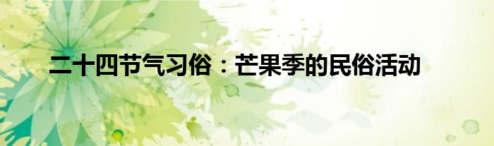 大家好,综合小编来为大家讲解下。二十四节气习俗:芒果季的民俗活动这个很多人还不知道,现在让我们一起来看看吧!
