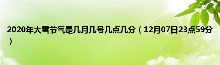 大家好,综合小编来为大家讲解下。2020年大雪节气是几月几号几点几分,12月07日23点59分这个很多人还不知道,现在让我们一起来看看吧!