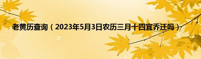 大家好,综合小编来为大家讲解下。老黄历查询,2023年5月3日农历三月十四宜乔迁吗这个很多人还不知道,现在让我们一起来看看吧!