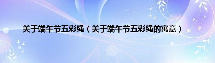 一、关于端午节五彩绳的寓意:: 五色线是用青、红、白、黑、黄五种颜色的丝线搓,编在一起的细索。过端午节这天,大人们便在儿童的手腕、服腕和脖子上系上五色线。人们认为系上五色线,可以驱恶免疾,长命百岁。因此,五色线又叫“长命缕”、“续命缕”、“辟兵绘”、“朱索”,民间还有称作“花花绳”的。