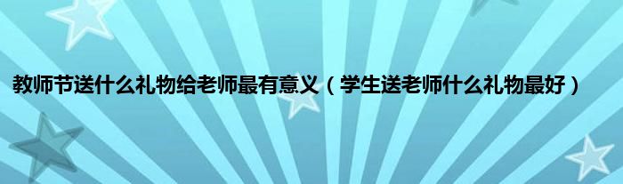 本文教师节送什么礼物给老师最有意义,学生送老师什么礼物最好到此分享完毕,希望对大家有所帮助。
