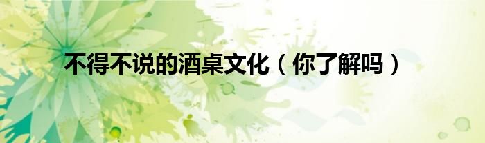大家好,综合小编来为大家讲解下。不得不说的酒桌文化,你了解吗这个很多人还不知道,现在让我们一起来看看吧!