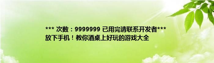 大家好,综合小编来为大家讲解下。*** 次数:9999999 已用完请联系开发者*** 放下手机!教你酒桌上好玩的游戏大全这个很多人还不知道,现在让我们一起来看看吧!