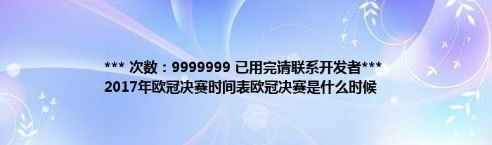 大家好,综合小编来为大家讲解下。*** 次数:9999999 已用完请联系开发者*** 2017年欧冠决赛时间表欧冠决赛是什么时候这个很多人还不知道,现在让我们一起来看看吧!