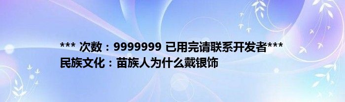 大家好,综合小编来为大家讲解下。*** 次数:9999999 已用完请联系开发者*** 民族文化:苗族人为什么戴银饰这个很多人还不知道,现在让我们一起来看看吧!
