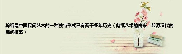 大家好,综合小编来为大家讲解下。剪纸是中国民间艺术的一种独特形式已有两千多年历史,剪纸艺术的由来:起源汉代的民间技艺这个很多人还不知道,现在让我们一起来看看吧!