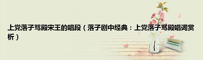 本文上党落子骂殿宋王的唱段,落子剧中经典:上党落子骂殿唱词赏析到此分享完毕,希望对大家有所帮助。