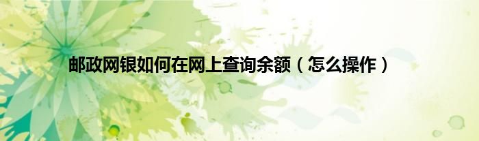 欢迎观看本篇文章,小升来为大家解答以上问题。邮政网银如何在网上查询余额,怎么操作很多人还不知道,现在让我们一起来看看吧!