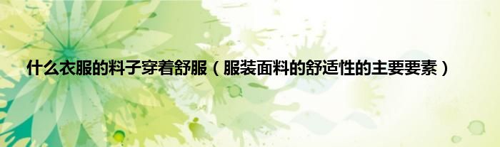 欢迎观看本篇文章,小升来为大家解答以上问题。什么衣服的料子穿着舒服,服装面料的舒适性的主要要素很多人还不知道,现在让我们一起来看看吧!