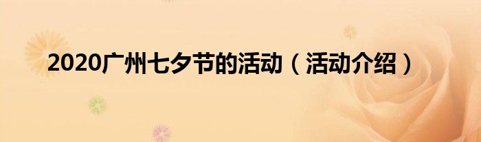 2020广州七夕节的活动(活动介绍)