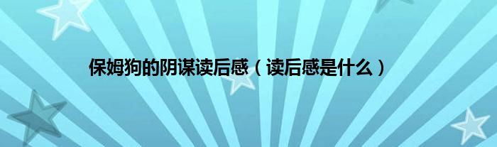 欢迎观看本篇文章,小升来为大家解答以上问题。保姆狗的阴谋读后感,读后感是什么很多人还不知道,现在让我们一起来看看吧!