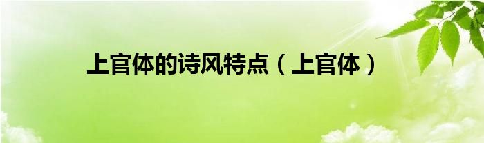 大家好,小问来为大家解答以上问题。上官体的诗风特点,上官体这个很多人还不知道,现在让我们一起来看看吧!
