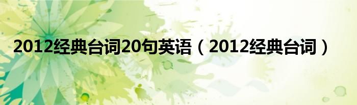 以上就是【2012经典台词20句英语,2012经典台词】相关内容。