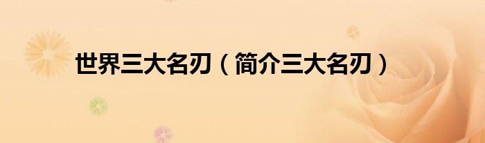 欢迎观看本篇文章,小升来为大家解答以上问题。世界三大名刃,简介三大名刃很多人还不知道,现在让我们一起来看看吧!