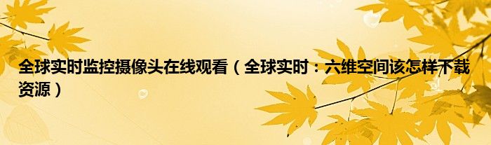 大家好,综合小编来为大家讲解下全球实时监控摄像头在线观看,全球实时:六维空间该怎样下载资源这个很多人还不知道,现在让我们一起来看看吧!