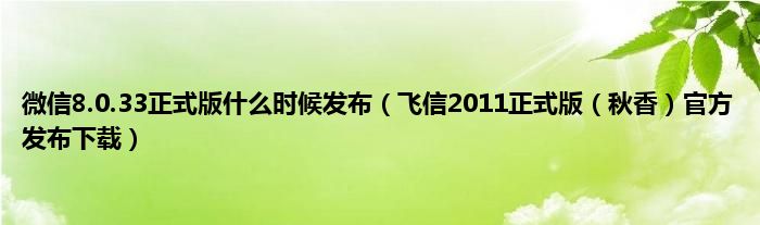 大家好,综合小编来为大家讲解下微信8.0.33正式版什么时候发布,飞信2011正式版,秋香官方发布下载这个很多人还不知道,现在让我们一起来看看吧!