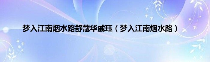 大家好,小问来为大家解答以上问题。梦入江南烟水路舒蔻华戚珏,梦入江南烟水路这个很多人还不知道,现在让我们一起来看看吧!