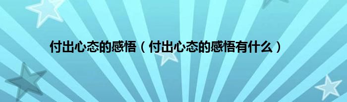 欢迎观看本篇文章,小升来为大家解答以上问题。付出心态的感悟,付出心态的感悟有什么很多人还不知道,现在让我们一起来看看吧!