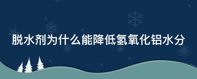 脱水剂能降低氢氧化铝水分是因为脱水剂是一种不含磷化合物、硅化合物,其吸附在氢氧化铝颗粒的表面上,使其从亲水性变为疏水性,因此吸附在颗粒表面的水被排斥,其他水也可以从氢氧化铝颗粒的孔中顺畅流出,起到在脱水和过滤中的作用。另外,氢氧化铝脱水剂可完全分解成气体并在焙烧炉的高温下释放。脱水剂是指在燃烧过程中夺走膨胀型阻燃剂中的成碳剂的水分的物质,在脱水的过程中可以重复再利用,所以也可以称为脱水成碳催化剂。种类很多,如乙醇、丙酮、甘油、正丁醇和叔丁醇等。