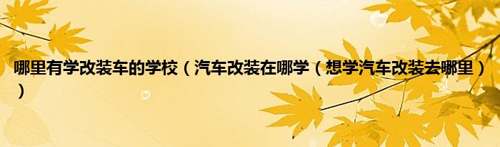 大家好,综合小编来为大家讲解下哪里有学改装车的学校,汽车改装在哪学,想学汽车改装去哪里这个很多人还不知道,现在让我们一起来看看吧!