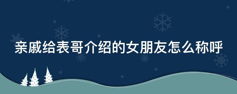 最佳答案亲戚给表哥介绍的女朋友称呼为姐姐或者嫂子。称呼是一种文化现象,从一个时代的称呼中,我们可以窥见一个时代的风貌。称呼也是一面镜子。称呼的变化是文化的变化,同时也被视为历史文化的折射。中国人的称呼,实质上就是一部中国文化的发展史,其中蕴含着中华民族悠久的文化历史的沉淀与变迁。中国...
