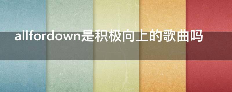 allfordown不是积极向上的歌曲,allfordown的意思是一切都是为了失败。歌曲是由歌词和曲谱相结合的一种艺术形式,也是一种表现形式。词曲一一对应。歌曲的创作一般有三种方式:一是先有文辞,后据之谱曲;二是先曲后词,依声填词;三是通过已有曲或词,重新谱写词曲,属于改编或翻唱。而唱法又分为一人独唱、多人齐唱、多人多声部重唱、对唱、联唱、领唱、齐唱或合唱。歌曲带给人们的是全方位的听觉享受,优美的旋律使人能够产生高尚的想法,丰富人类的感情,促进他们理解人类情感的深邃内涵,达到心灵的和谐以及与自然的契合。