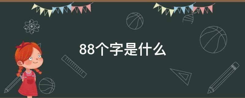 88个字是指88个汉字。汉字,又称中文、中国字,别称方块字,是汉语的记录符号,属于表意文字的词素音节文字。世界上最古老的文字之一,已有六千多年的历史。在形体上逐渐由图形变为笔画,象形变为象征,复杂变为简单;在造字原则上从表形、表意到形声。除极个别汉字外(如瓩、兛、兣、呎、嗧等),都是一个汉字一个音节。现代汉字是指楷化后的汉字正楷字形,包括繁体字和简化字。现代汉字即从甲骨文、金文、大篆(籀文)、小篆,至隶书、草书、楷书、行书等演变而来。