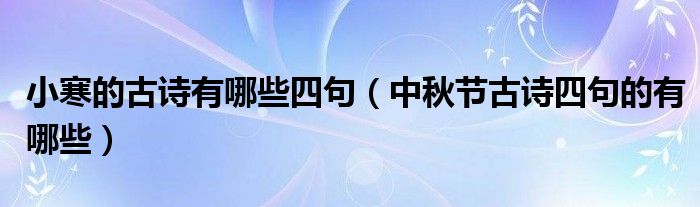 大家好,乐儿来为大家解答以下问题,小寒的古诗有哪些四句,中秋节古诗四句的有哪些很多人还不知道,现在让我们一起来看看吧!