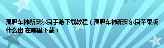 关于孤胆车神新奥尔良手游下载教程,孤胆车神新奥尔良苹果版什么出 在哪里下载这个很多人还不知道,今天菲菲来为大家解答以上的问题,现在让我们一起来看看吧!