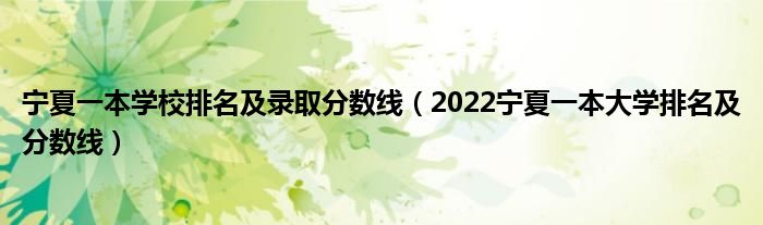 大家好,乐儿来为大家解答以下问题,宁夏一本学校排名及录取分数线,2022宁夏一本大学排名及分数线很多人还不知道,现在让我们一起来看看吧!