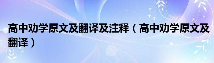 关于高中劝学原文及翻译及注释,高中劝学原文及翻译这个很多人还不知道,今天菲菲来为大家解答以上的问题,现在让我们一起来看看吧!