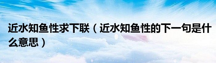 大家好,乐儿来为大家解答以下问题,近水知鱼性求下联,近水知鱼性的下一句是什么意思很多人还不知道,现在让我们一起来看看吧!