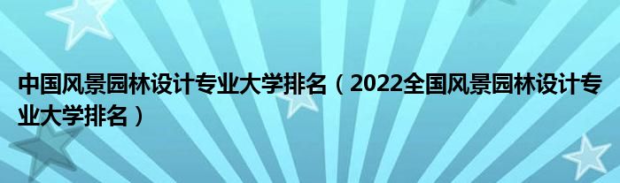 大家好,乐儿来为大家解答以下问题,中国风景园林设计专业大学排名,2022全国风景园林设计专业大学排名很多人还不知道,现在让我们一起来看看吧!