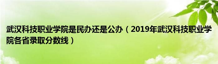 大家好,乐儿来为大家解答以下问题,武汉科技职业学院是民办还是公办,2019年武汉科技职业学院各省录取分数线很多人还不知道,现在让我们一起来看看吧!