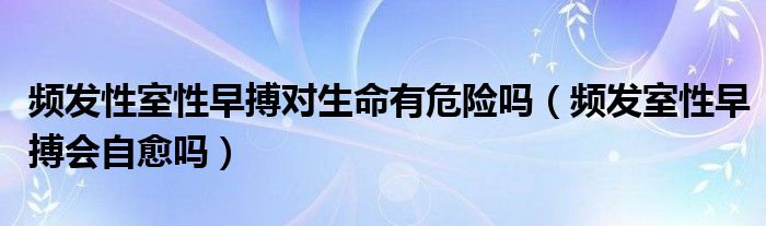 大家好,乐天来为大家解答以下的问题,频发性室性早搏对生命有危险吗,频发室性早搏会自愈吗很多人还不知道,现在让我们一起来看看吧!