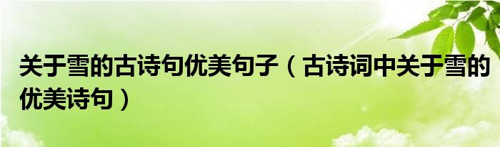 大家好,乐儿来为大家解答以下问题,关于雪的古诗句优美句子,古诗词中关于雪的优美诗句很多人还不知道,现在让我们一起来看看吧!