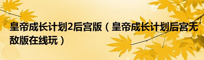 关于皇帝成长计划2后宫版,皇帝成长计划后宫无敌版在线玩这个很多人还不知道,今天菲菲来为大家解答以上的问题,现在让我们一起来看看吧!