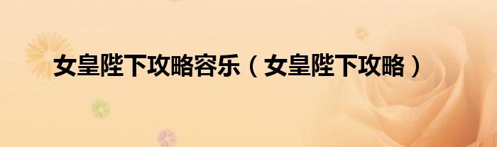 关于女皇陛下攻略容乐,女皇陛下攻略这个很多人还不知道,今天菲菲来为大家解答以上的问题,现在让我们一起来看看吧!