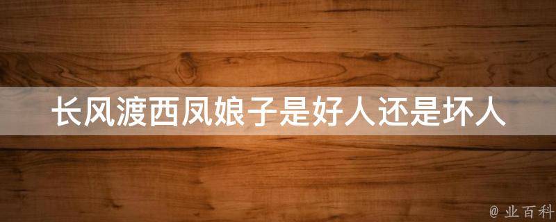 长风渡西凤娘子是坏人。西凤娘子是一个复杂的人物,她是洛子商的手下,一直在为洛子商做事。西凤娘子表面上是兰笑坊老板娘,实则是洛子商的眼线,小说中她还受洛子商的指示勾引范玉。但是西凤娘子也不完全是心肠狠毒的人,她对洛子商的忠心蒙蔽了她对善与恶的判断。