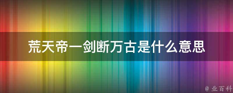 荒天帝一剑断万古是什么意思