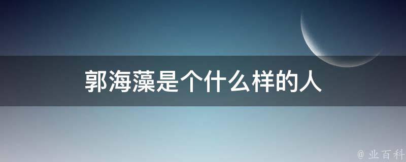 郭海藻是一个在任何时候都没有过自己正向思想的女人。同时她也是一个典型的不思进取又自甘堕落的女人,所以她的人生只有一种必然的结果,注定了不会幸福。郭海藻为六六的小说《蜗居》中的女主角之一,郭海萍的妹妹,电视剧版由李念饰演。