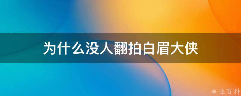 3、可能性问题:尽管《白眉大侠》是一部经典武侠电影,但想要重新拍摄一个同样经典的作品并不是易如反掌的事情。翻拍需要更多的投入和创意,以及演员、导演等各方面的合适人选。