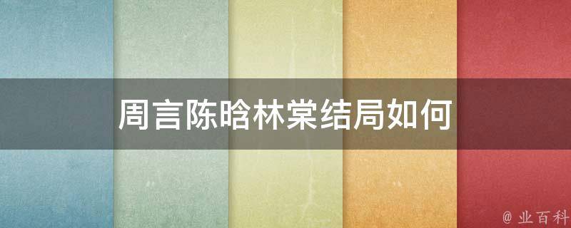 周言、陈晗、林棠的结局是:陈晗与周言幸福地生活在一起,林棠回到了自己的故乡。《风中晚意》是一部典型的爱情小说,不仅描写了两位主人公之间的感情线,还反映了社会各个阶层人物的精神世界和命运。