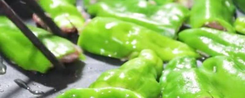 最佳答案用料:猪肉泥200克、青厂椒3个、料酒、生抽适量、胡椒粉适量、葱、姜、盐、清水、熟油适量。1、猪肉泥里放葱姜末、生抽、料酒、蚝油、胡椒粉、熟油、盐搅拌均匀备用。2、青长椒斜刀切圈去掉里面的筋,装上搅好的肉馅。3、锅里放油煎至金黄色,煎好后放蒸锅里大火,锅开后蒸5分钟。4、用一个容器里放...