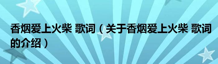 大家好,小夏来为大家解答以上的问题。香烟爱上火柴 歌词,关于香烟爱上火柴 歌词的介绍很多人还不知道,现在让我们一起来看看吧!