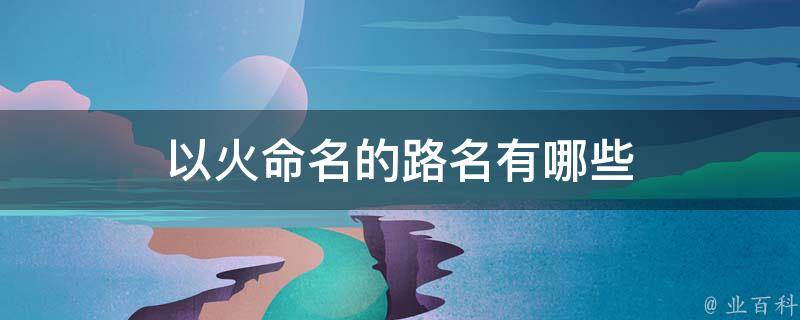 以火命名的路名有:火炬路、栖火路、火磨街、火龙山路、火巷等。济宁市火炬路-日菏铁路跨线桥工程,北起太白楼路以北,向南连续跨越太白楼路、货运场铁路线、日菏铁路、规划铁南路,在西河路前接地。火磨街位于河北省邯郸市。