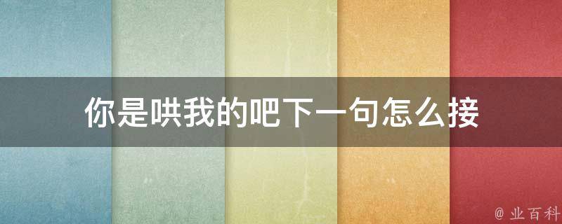 你是哄我的吧下一句可以接:我是哄你啊,你这么好,只要你愿意,我一辈子都哄你。赞美可以让人感觉到受欢迎和认可,让人更容易放松下来。要是想要哄别人,就需要先赞美对方,充满信心地表达对对方的好感,让对方感觉到被珍惜和尊重。