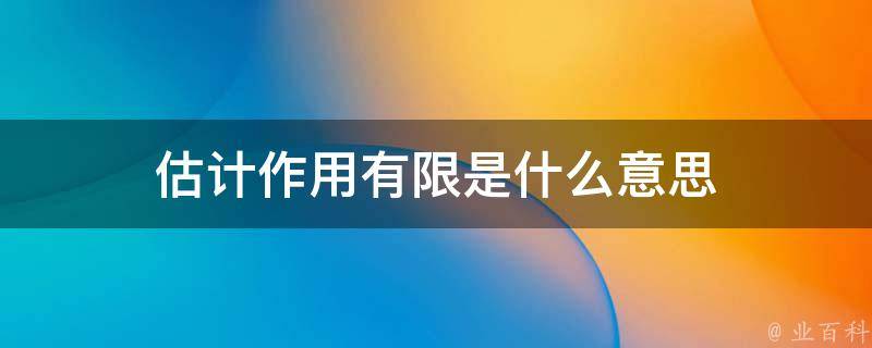 估计作用有限意思是作用不大、作用一般,比如某产品广告在做广告时费了好大劲,花了不少精力和不少的钱,目的是提高产品的知名度,最重要的是宣传产品,为了增加销售量,但做了广告后效果不明显,销售量也不大,作用很有限。