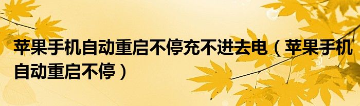 关于苹果手机自动重启不停充不进去电,苹果手机自动重启不停这个很多人还不知道,今天菲菲来为大家解答以上的问题,现在让我们一起来看看吧!